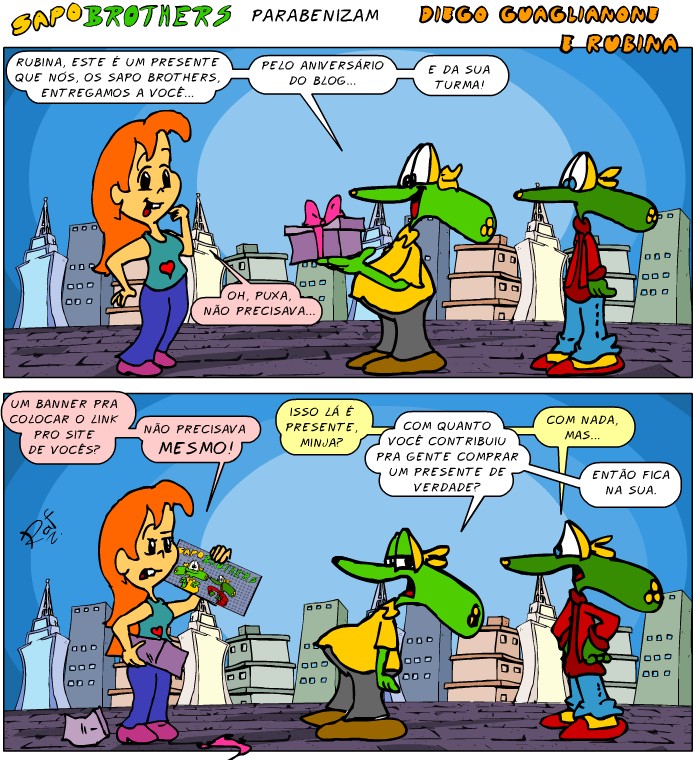 Sapo Brothers, diversão, tiras, humor, games, jogos, animação, anima, quadrinhos, infantil, minja, jones